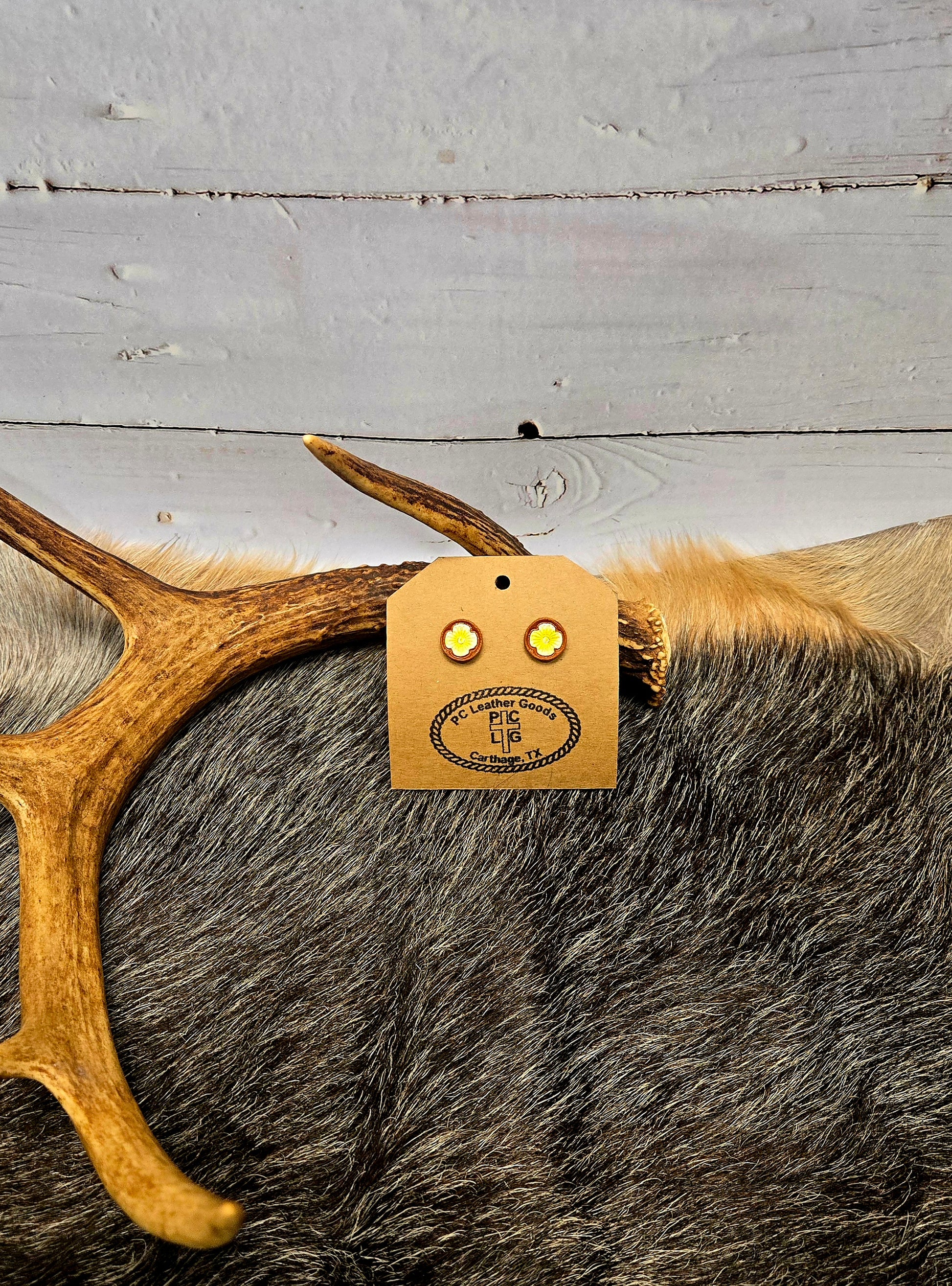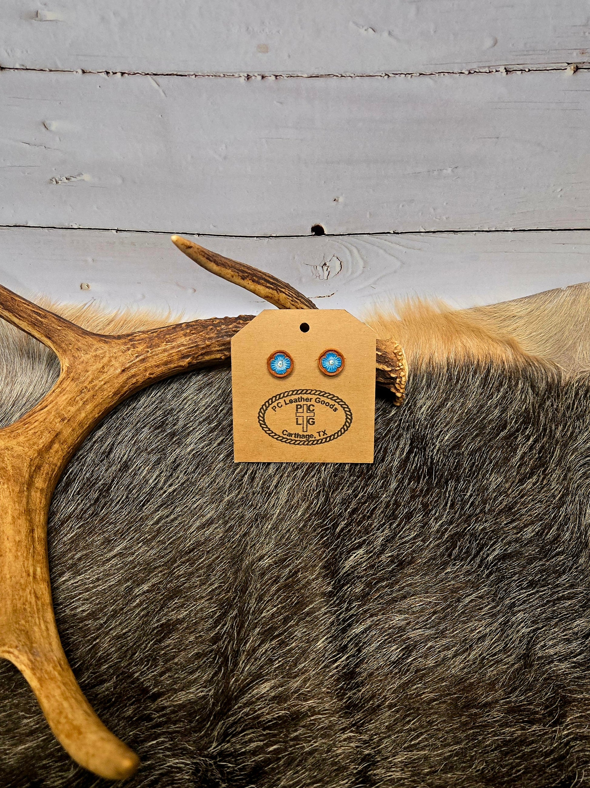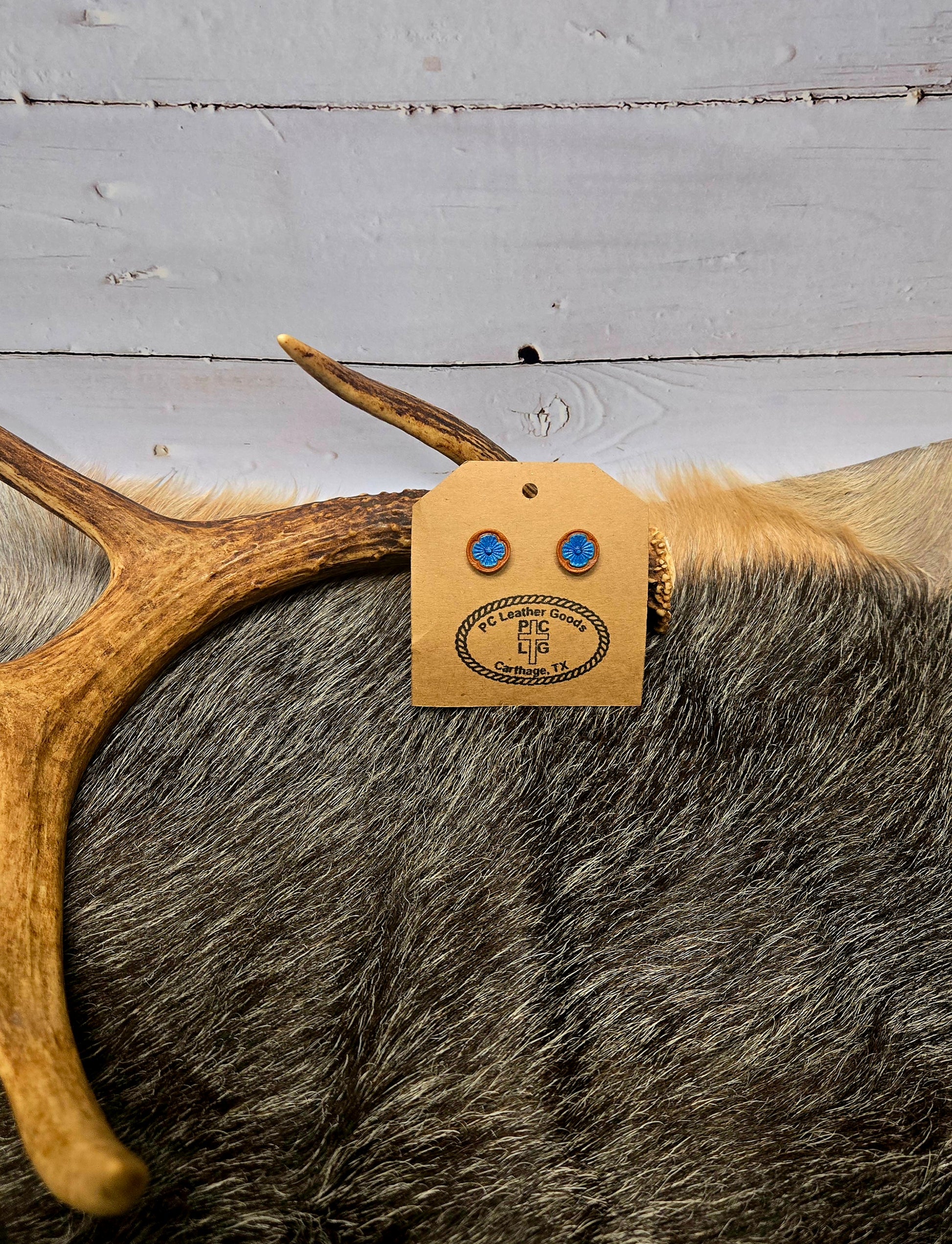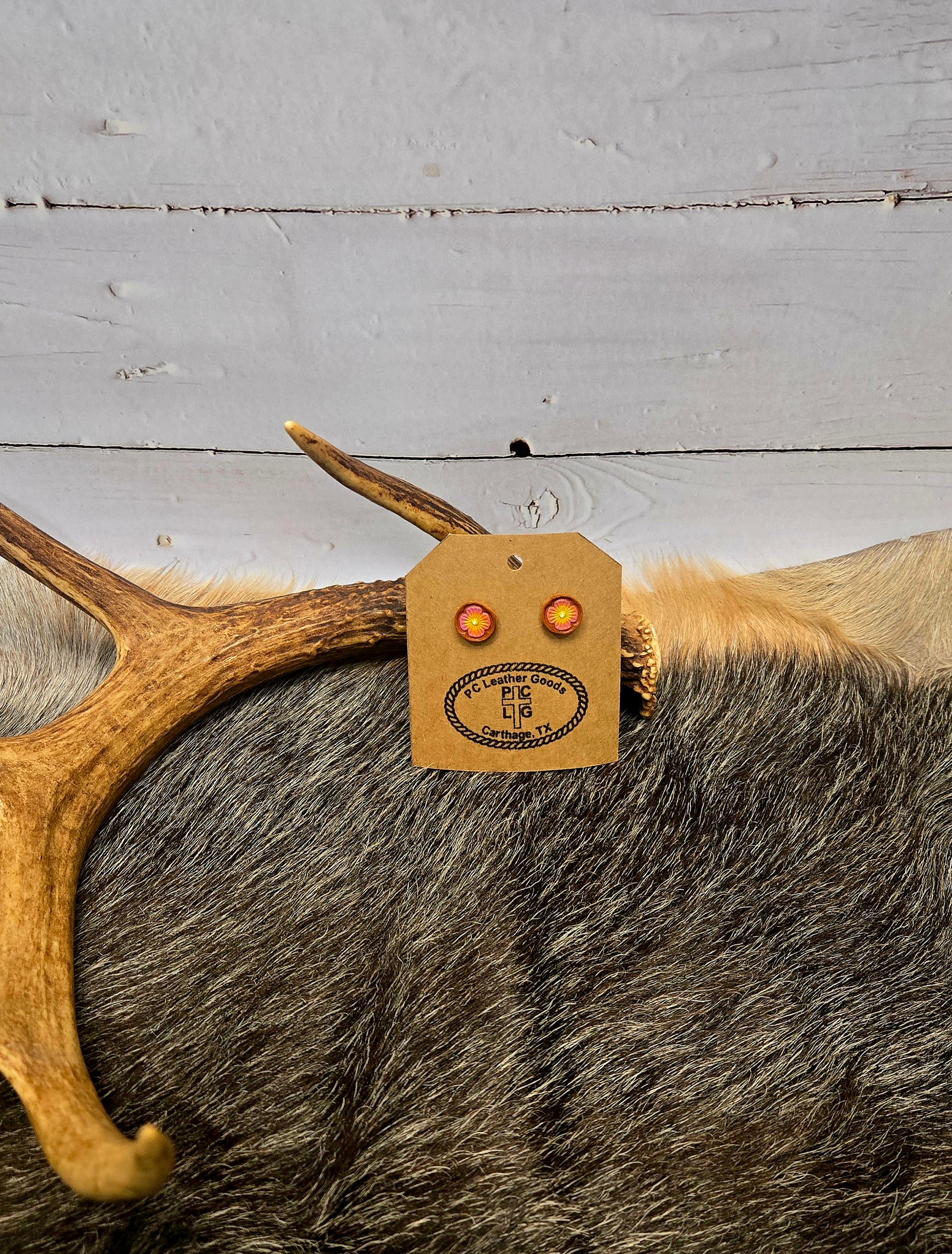 Crafted from premium quality leather, these stud earrings are meticulously hand painted and hand tooled. Each pair showcases expert craftsmanship, combining artistry with lasting wearability. Designed to elevate your style effortlessly, these earrings add a sophisticated touch to any outfit.